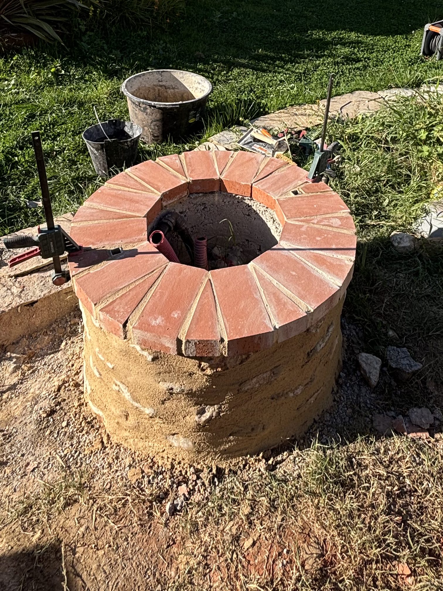 Petite maçonnerie pour transformer un forage en « Puits en pierre ».